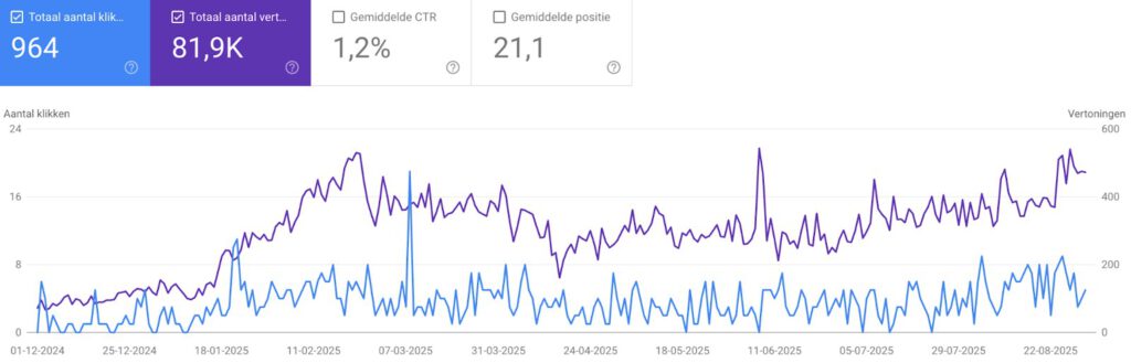 Ook de autoriteit van het domein groeide sterk, van een Domain Rating van 9 naar 41. De verbeterde zichtbaarheid leidde tot meer bezoekers, betere posities en uiteindelijk meer verkopen. Bestellingen kwamen binnen uit Nederland, België, Duitsland, Frankrijk, Luxemburg, Groot-Brittannië, Denemarken, Portugal, Spanje, Hongarije en de Verenigde Staten.